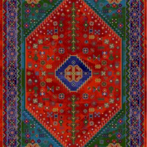 نخ پلی استر و پی سی اف که نوعی پلاستیک هست و از عمر کمتری نسبت به فرش های بافته شده با نخ اکرولیک برخوردار هست.